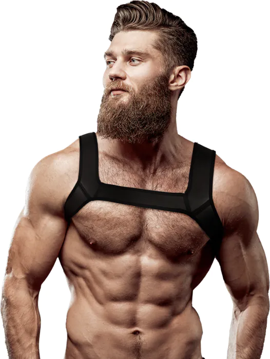 Ge din outfit en extra dimension med denna sexy sele som framhäver din maskulina figur. Passar för den som vill göra ett djärvt intryck vid evenemang.