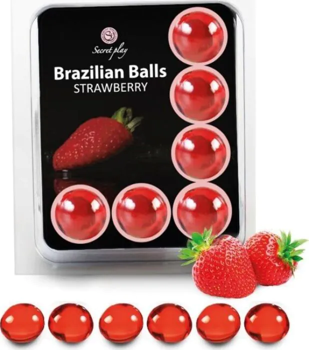 Brasilianska bollar erbjuder en intensiv sensorisk upplevelse med en härlig smak av jordgubb. Tänk på att de inte kan användas med kondomer så planera din användning därefter.