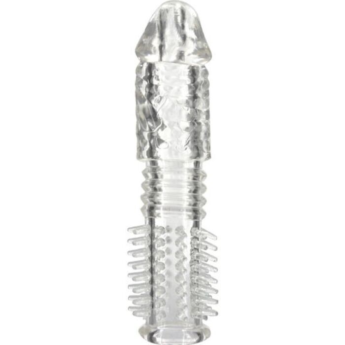Öka både längd och omkrets medan du intensifierar stimuleringen för din partner med Seven Creations texturerade silikon penis hylsa. Dess unika struktur förstärker friktionen i intima områden, vilket ger en extraordinär upplevelse. Tillverkad av mjuk, kroppssäker silikon, erbjuder denna hylsa en bekväm passform för olika storlekar.