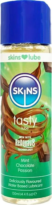 Ett smaksatt, vattenbaserat glidmedel från SKINS för par och solo som önskar en fräsch smak av mint och mjölkchoklad. Bekvämt och lätt att rengöra.