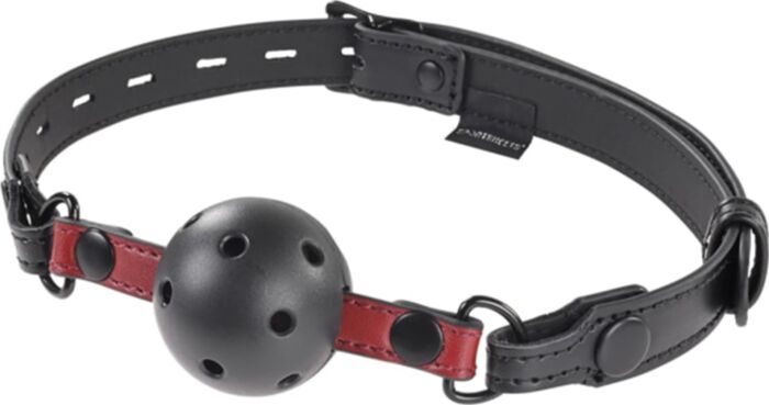 Ja — bollen har ventilationshål som gör att mer luft kan passera än en solid bollgag. Övervaka alltid andningen och ta bort gaggen vid tecken på obehag.
