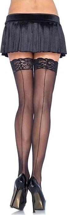 Ge din outfit en sensuell uppgradering med strumpbyxor i svart som har en elegant söm bak och en delikat spetskant. för att höja stilen.
