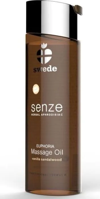 En örtbaserad afrodiasisk massageolja från SWEDE. Euphoria kombinerar vegetabiliska oljor med rena eteriska oljor av vanilj och sandelträ i en glasflaska om 75 ml. 100% vegansk och avsedd för professionella massörer och par som önskar en varm, aromatisk massageolja som kan värmas försiktigt för att frigöra doft och öka avslappningen.