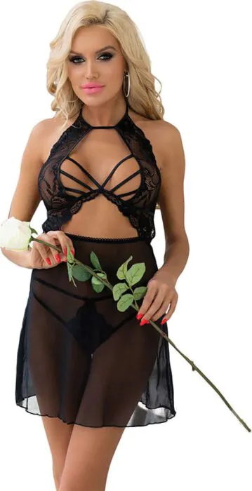 Malviami-setet från LIVCO CORSETTI är designat för att öka din självförtroende och samtidigt erbjuda komfort. Den djärva spetsöverdelen och de eleganta trosorna framhäver vackert dina kurvor.