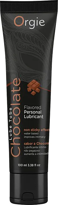 Orgies Lube Tube Choklad ger en god smak som gör intima stunder roligare och mer njutbara. Tänk på att det vattenbaserade formulan kan behöva appliceras igen under längre sessioner.