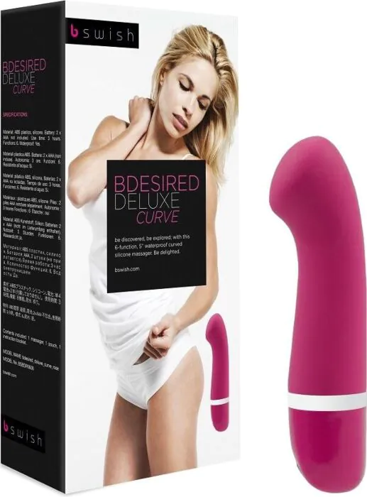 Upplev riktad G-punktsnjutning med Bdesired Deluxe Curve. Den mjuka silikonen och sex vibrerande funktioner gör den lämplig för både solo- och parlek.