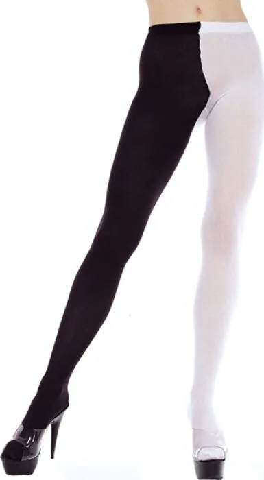 Dessa släta, ogenomskinliga strumpbyxor från Music Legs har ett ben i svart och det andra i vitt — en djärv modeuttalande för den som gillar asymmetrisk stil. XXL-skärningen ger full täckning och passar bra under kjolar och klänningar.
